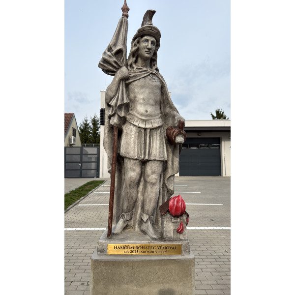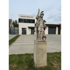 Chcete sochu ještě více personalizovat? Nechte si doplnit kovovou cedulku s vlastním textem – věnováním, jménem sboru, rokem založení nebo jakýmkoliv poselstvím, které je pro vás důležité. Tato možnost je dostupná za příplatek 3 000 Kč a promění sochu v jedinečný, nezaměnitelný artefakt s osobním příběhem.