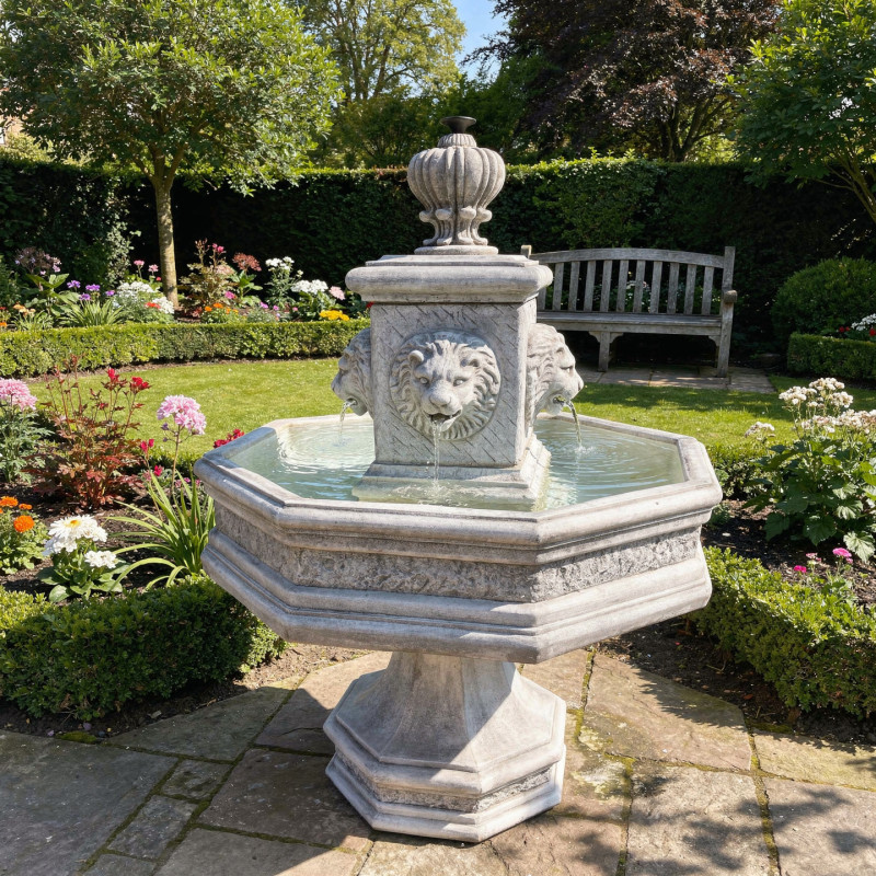 Fontána je včetně čerpadla a propojení všech lvích hlav a vrchního leknínu.