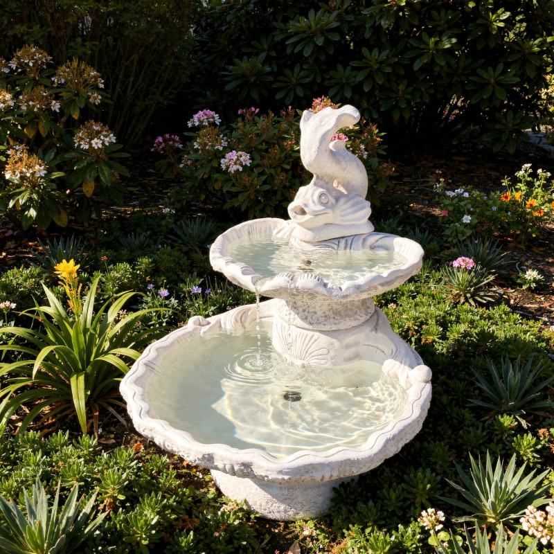 • Naše fontány jsou téměř bezúdržbové. Stačí občas umýt a napustit čistou vodou. Tuto vodu doporučujeme udržovat bezchlórovým přípravkem, např. chemie do dětských bazenů, objednat můžete zde. Tento přípravek zabraňuje růstu zelených řas.