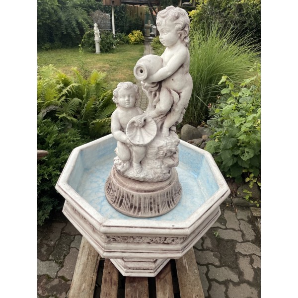 Fontána s dvojčaty je elegantní a působivý doplněk pro vaši zahradu.