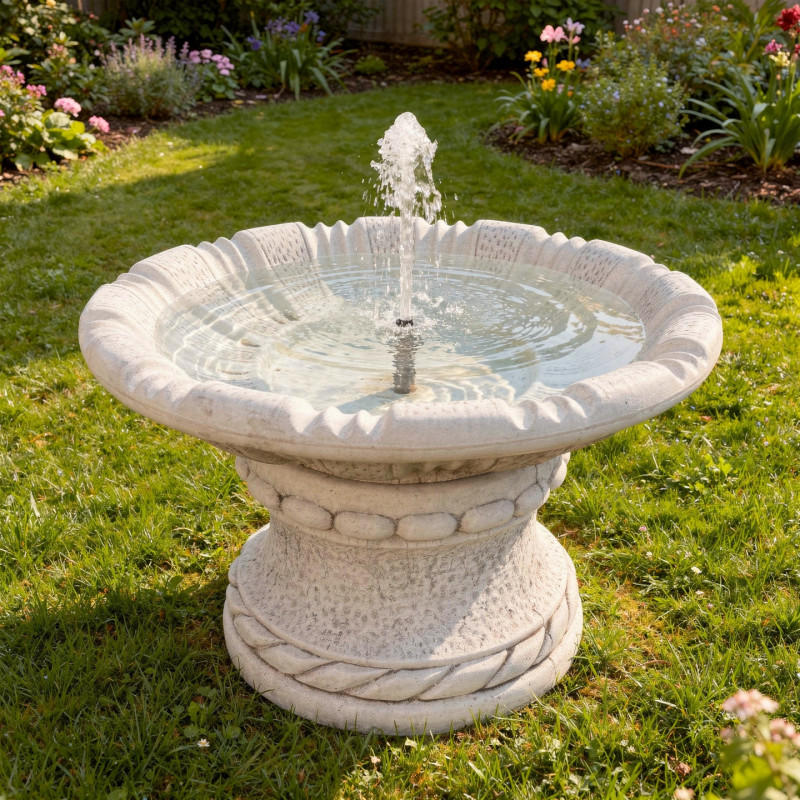 - Naše fontány jsou téměř bezúdržbové. Stačí občas umýt a napustit čistou vodou. Tuto vodu doporučujeme udržovat bezchlórovým přípravkem, např. chemie do dětských bazenů, objednat můžete zde. Tento přípravek zabraňuje růstu zelených řas.