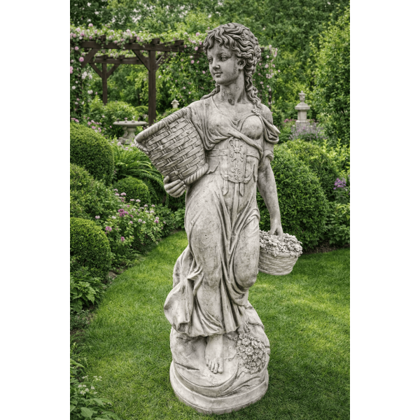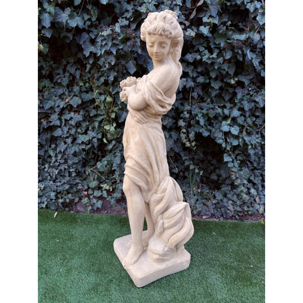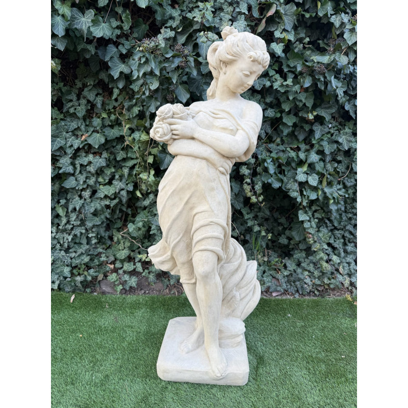 Tato socha dívka s růžemi je v barvě pískové, je vhodná na zahradu i terasu.