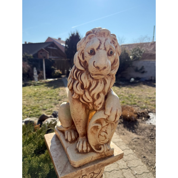 Tento lev není vyroben průmyslově v nějaké továrně. Každý kus je pečlivě zpracován s ohledem na nejmenší detaily - od výrazu tváře, přes dokonale vytvarovanou hřívu, až po realisticky zpracované svalstvo. Pískový odstín není náhodný - je to barva, která harmonicky ladí s přírodním prostředím, kamenem i cihlovou fasádou. Barva, která nevybledne a časem získává ještě ušlechtilejší patinu.