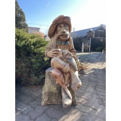 Toto je Vodník na pni Mel – ručne spracovaná socha, ktorá spája rozprávkový šarm s praktickou funkciou vodného chrliča.